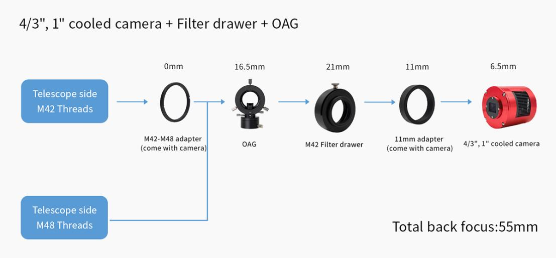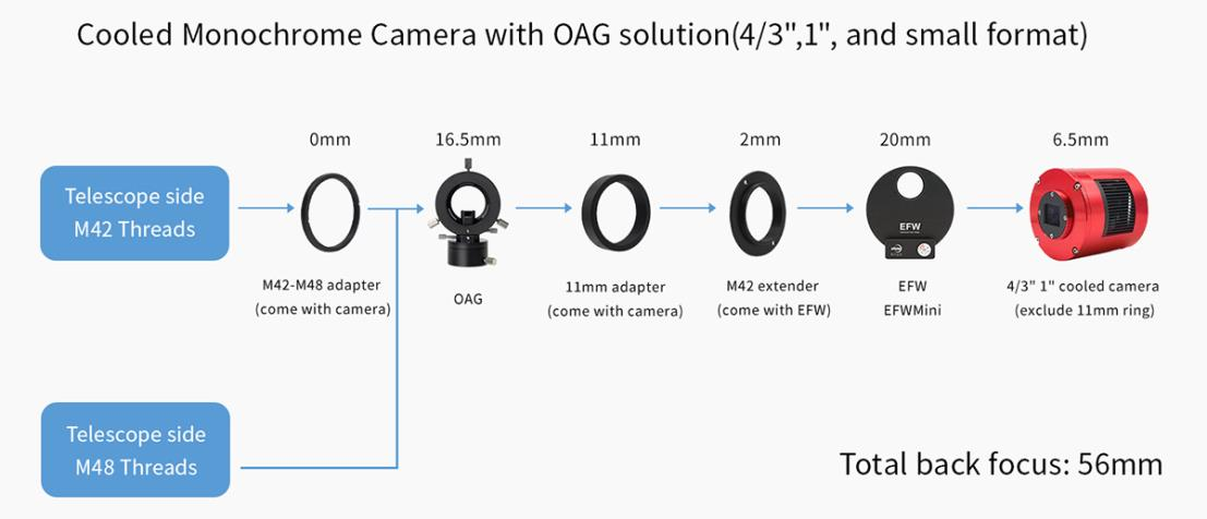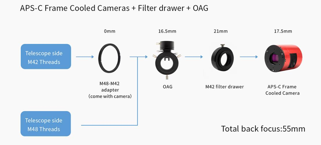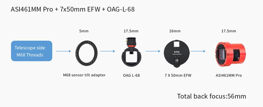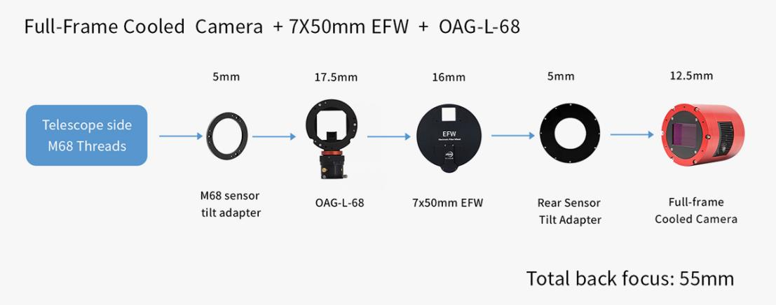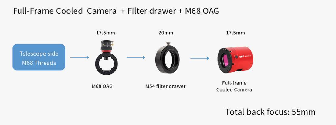 Note: This setup requires removing the M42 sensor tilt adapter that comes with the camera. If you have an M68 OAG, it can also be used as a replacement for the OAG -L. This configuration is suitable for telescopes with a focal ratio greater than F4.8.[/caption] [caption id="attachment_89722" align="alignnone" width="1107"]
