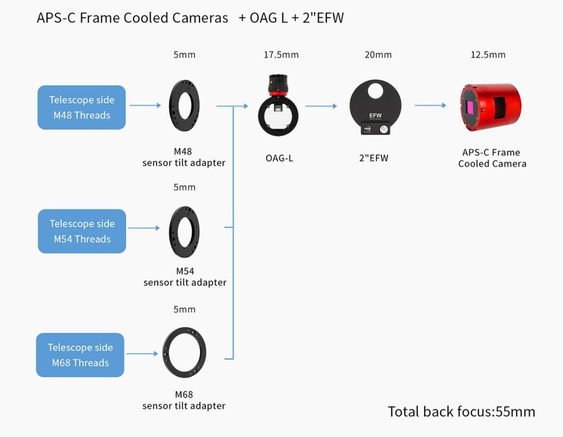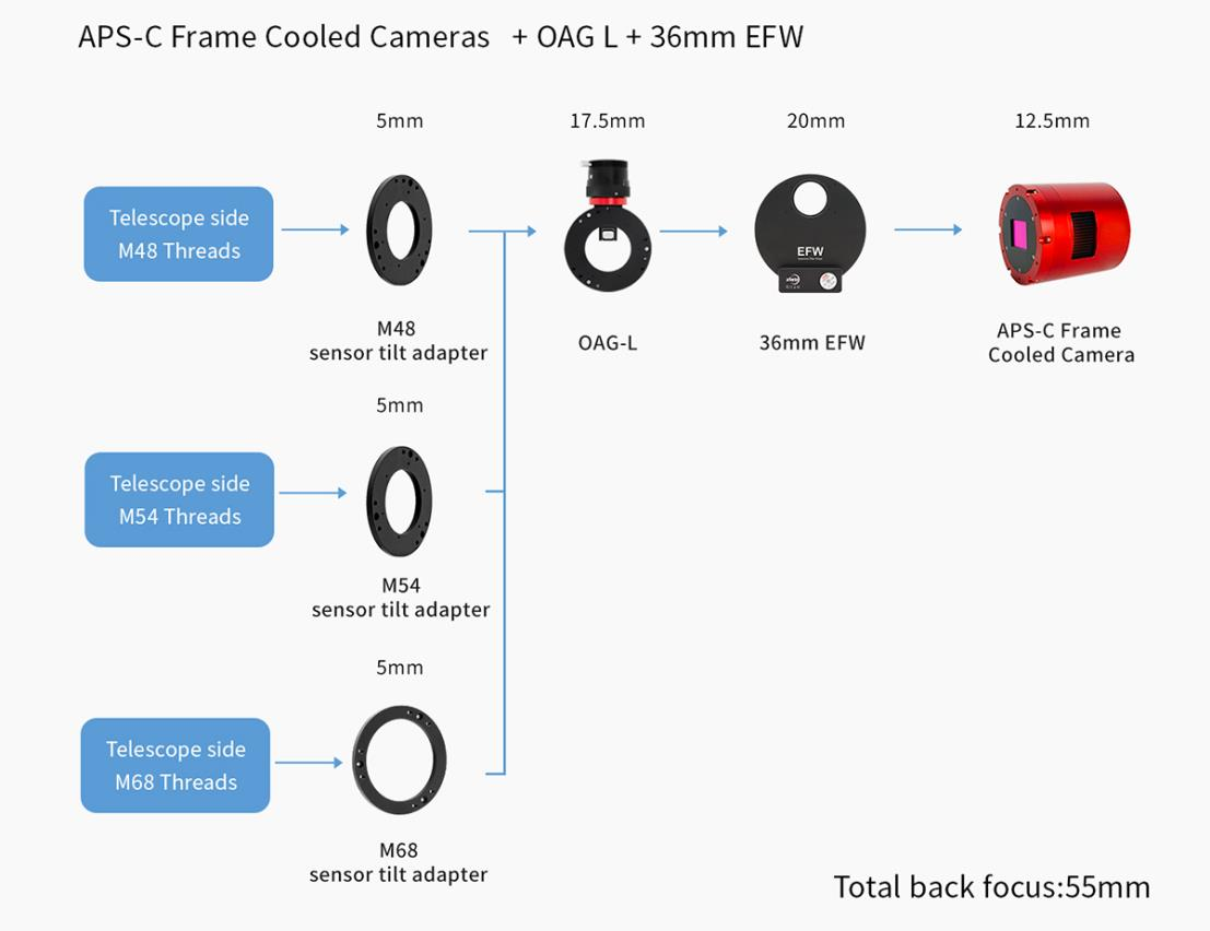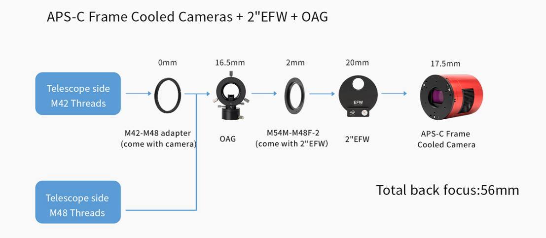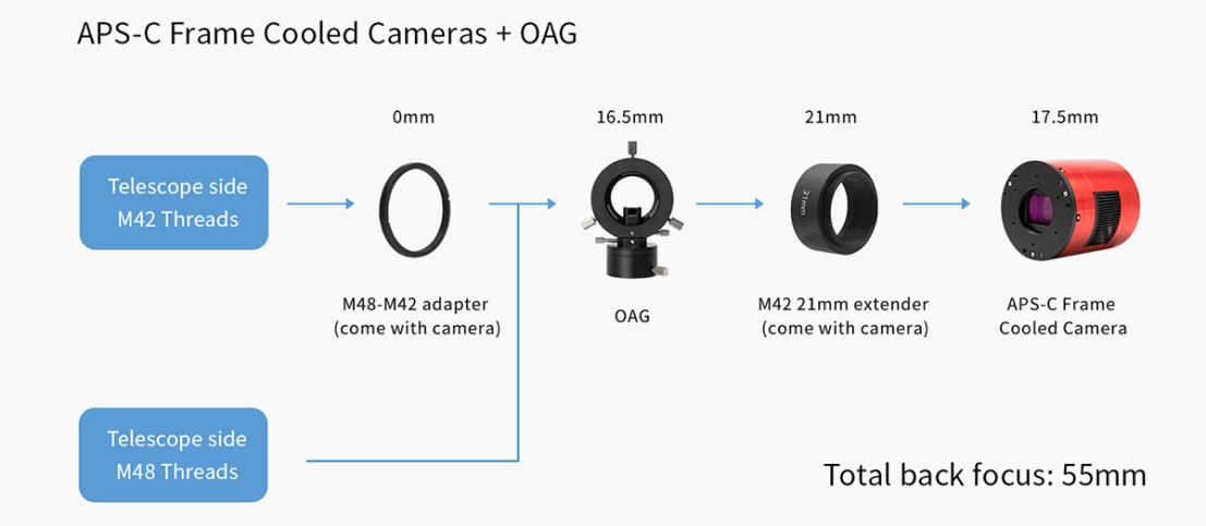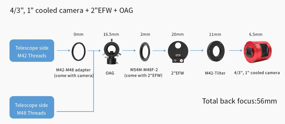 Note: This setup requires removing the M42 sensor tilt adapter that comes with the camera. If you have an M68 OAG, it can also be used as a replacement for the OAG -L. This configuration is suitable for telescopes with a focal ratio greater than F4.8.[/caption] [caption id="attachment_89722" align="alignnone" width="1107"]