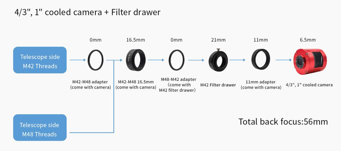 Note: The back focus: 56mm.The combination T2–M48 (16.5mm) + M48–M42 can be replaced with an M48–M48 (16.5mm) adapter.[/caption] [caption id="attachment_89716" align="alignnone" width="1107"]