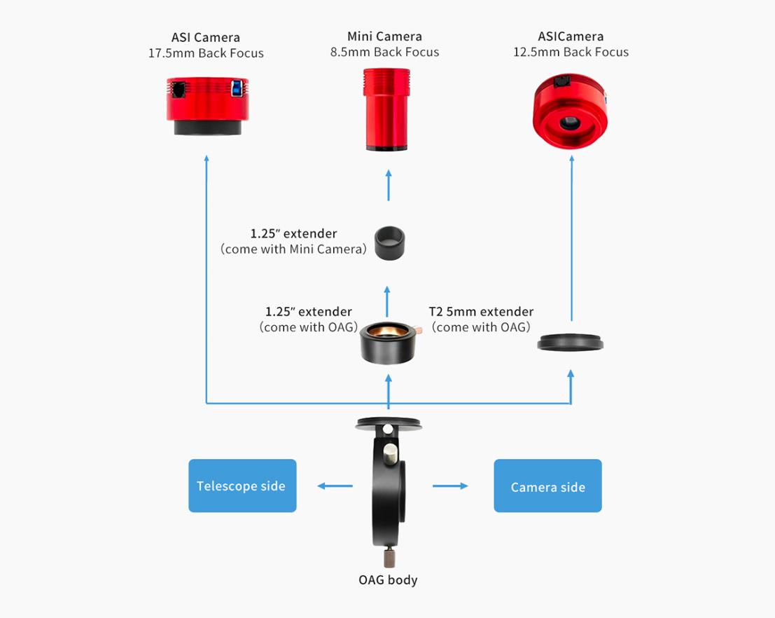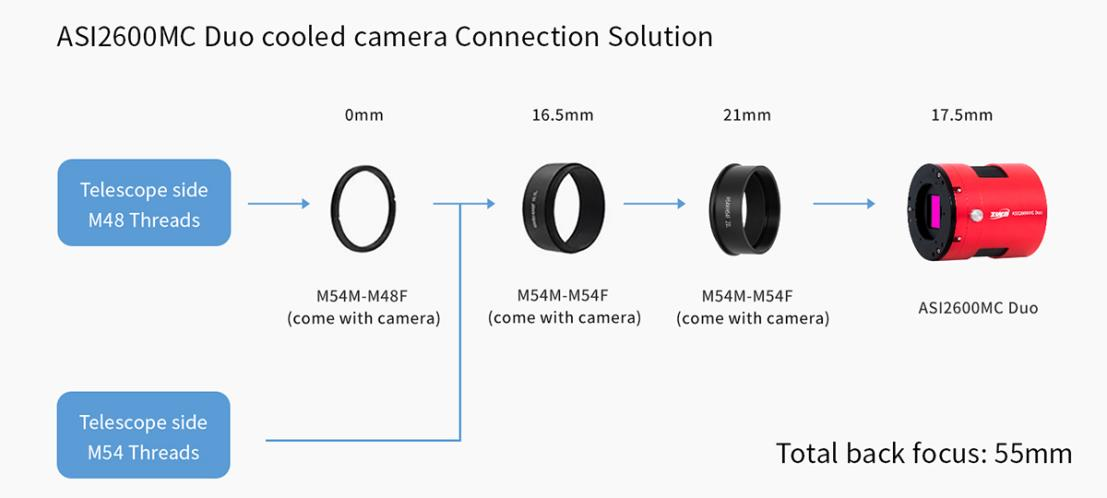 Note: For the ASI2600MC/MM Duo cooled camera, which integrates guiding and imaging