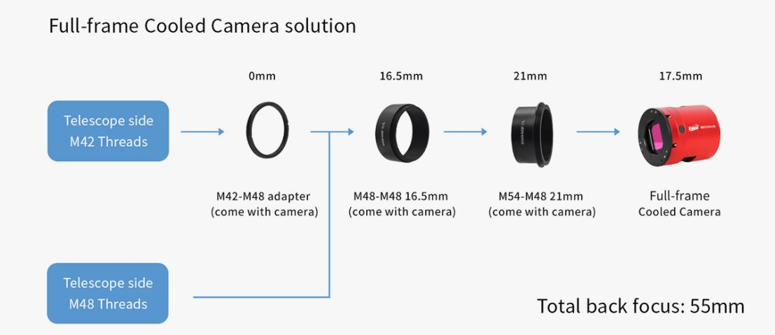Note: The back focus: 56mm.The combination T2–M48 (16.5mm) + M48–M42 can be replaced with an M48–M48 (16.5mm) adapter.[/caption] [caption id="attachment_89709" align="alignnone" width="1107"]