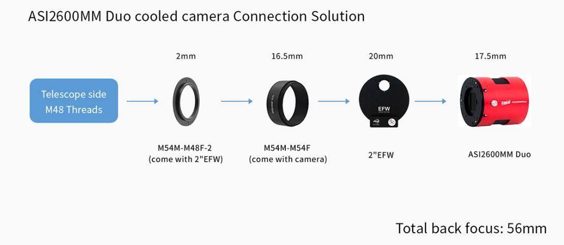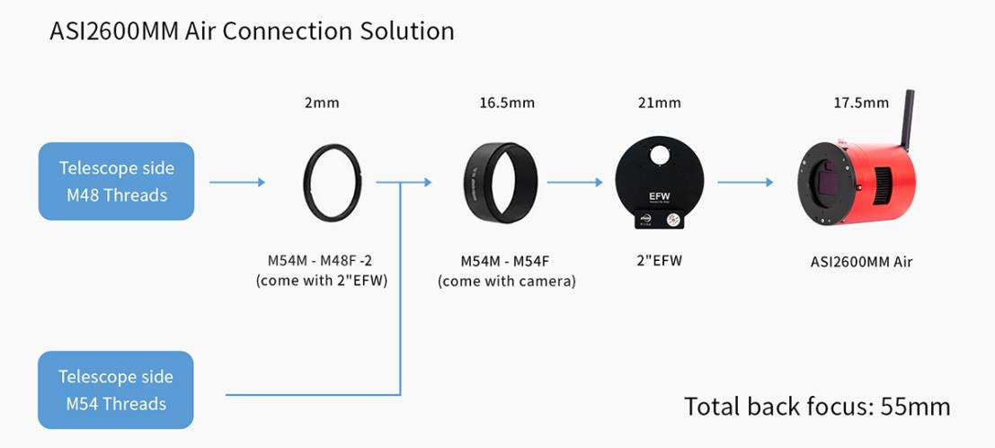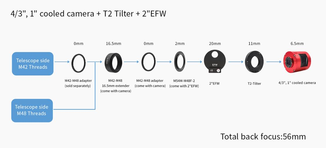 Note: The T2-T2 2mm adapter can be found in the 36mm EFW package. This configuration is suitable for telescopes with a focal ratio greater than F5.4. [/caption] [caption id="attachment_89720" align="alignnone" width="1107"]